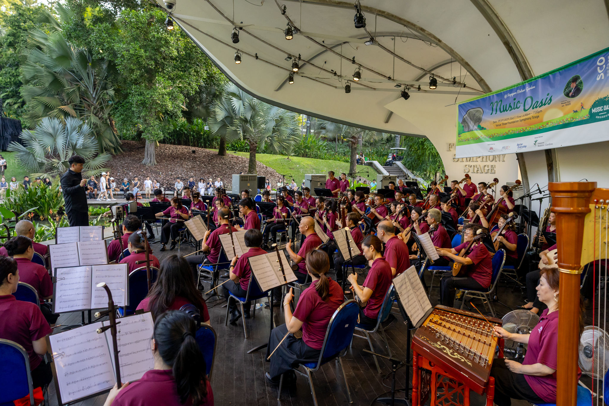 Description: Conductor Moses Gay and Singapore Chinese Orchestra in Botanic Gardens
