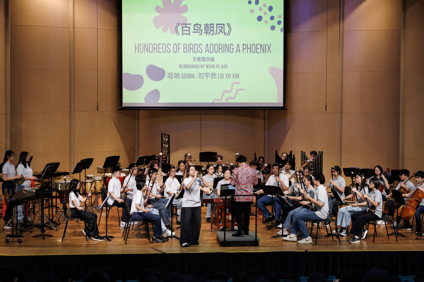 简介: 新加坡国家青年华乐团与指挥连汶华和唢呐独奏刘宇欣在德明政府中学呈现校园音乐会